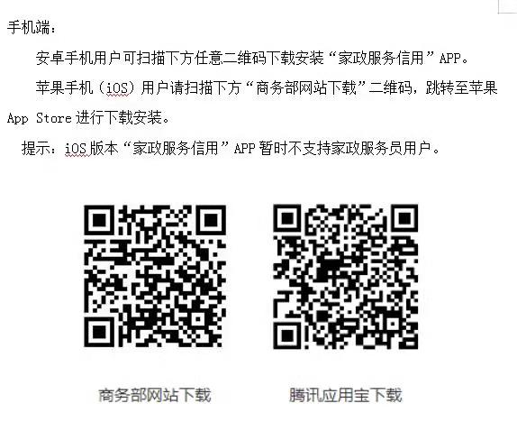 現(xiàn)商務(wù)部家政服務(wù)信息管理應(yīng)用-家政服務(wù)信用信息平臺已上線,平臺包括桌面端和手機(jī)程序(APP)兩部分,請通過以下地址登錄開展相關(guān)業(yè)務(wù)。